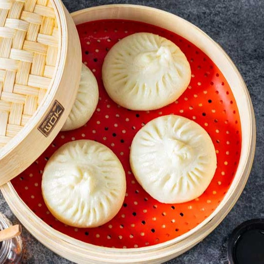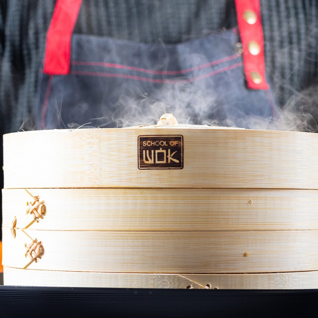 The bamboo basket is placed over simmering water. The condensation then rises through the bamboo and cooks the food. Due to the holes in the bamboo, it ensures that the dumplings or bao buns do not become soggy - instead, they keep their flavour, shape and fluffiness!