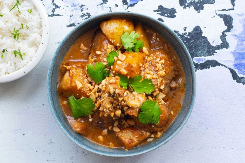 This rich and mild Thai Massaman curry works beautifully with seasonal spring lamb, and is a perfect alternative to a Sunday or Easter roast.