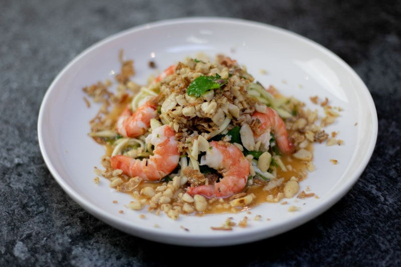 Learn how to make Green Mango and Prawn Salad. A quick, healthy recipe from chef Jeremy Pang for Vietnamese salad flavoured with mint, coriander, spring onion and chilli.