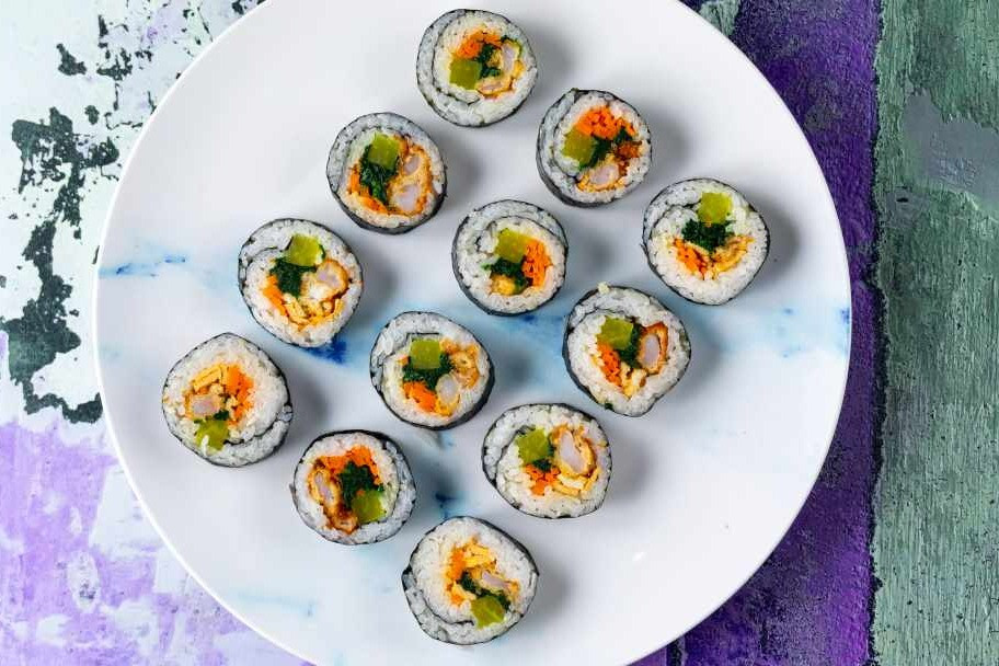 Delicious Korean Kimbap roll. Filled with an assortment of tasty ingredients, Emma also shows us the trick to make perfectly cooked sushi rice every time.