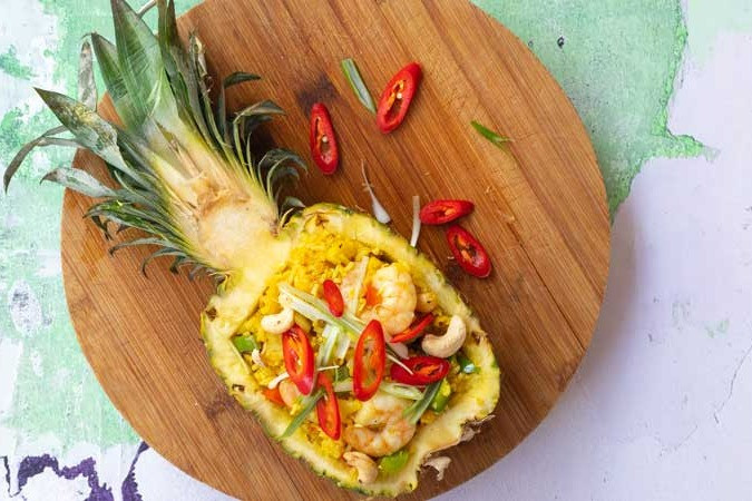 Fragrant jasmine rice stir-fried with sweet pineapple, succulent shrimp or chicken, and a blend of savory seasonings.