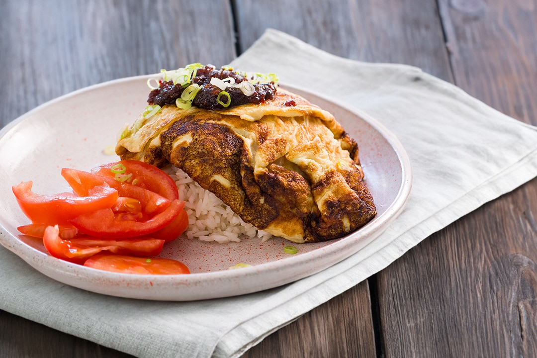 A super quick, easy and delicious classic. This Thai omelette, with spicy homemade Nam Prik Pao dipping sauce is sure to blow your socks off!
