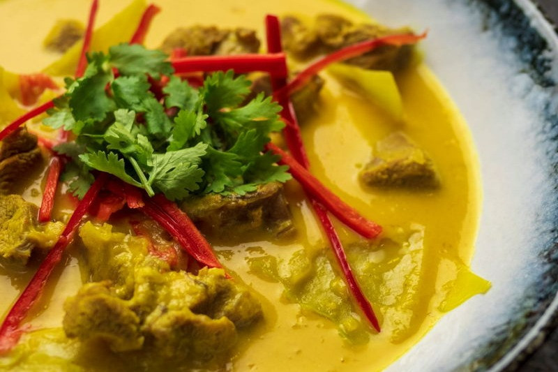 Chef Jeremy Pang's Indonesian Yellow Curry: Aromatic, flavorful turkey leg and cabbage in homemade curry paste. Unleash the taste of Indonesia!