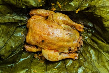 Beggar’s chicken, stuffed and marinated chicken cooked to perfection. You will never get chicken as juicy as this.
