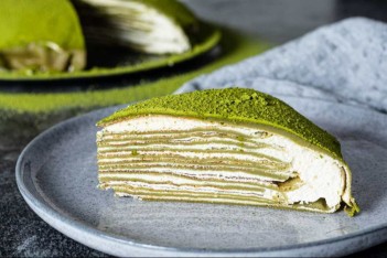 A show-stopping cake; made with thin matcha crepes and freshly whipped cream