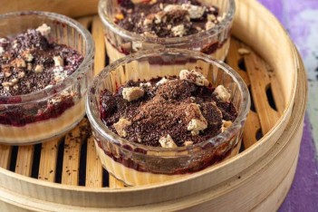 Soft egg custard with a quick cherry jam - perfect for an after dinner sweet treat