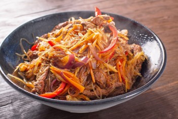 Ready for a quick and flavourful noodle dish? This Japchae is packed with delicious steak, crunchy veg, and perfectly seasoned noodles. Stir-fried to perfection, it's a dish you can whip up in no time!