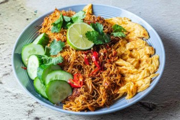 Vietnamese vermicelli salad recipe. Learn how to make a healthy, Asian-inspired rice noodle salad, using mint, coriander, and a quick pickled carrot and daikon mix.