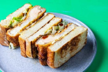 A delicious Japanese-style sandwich with a deep fried pork cutlet for a Friday treat!