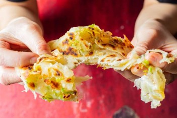 Flaky, light and crispy pancakes filled with a delicious spring onion paste