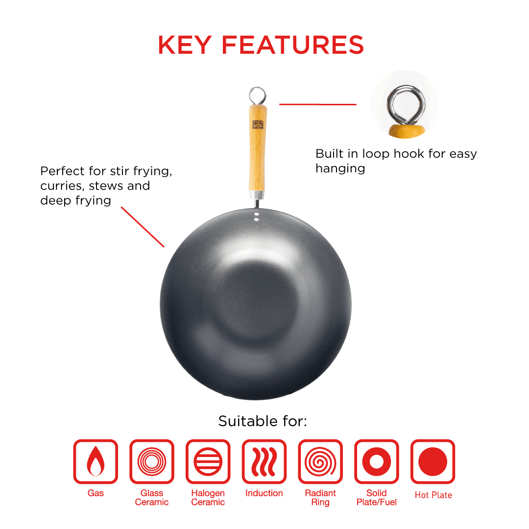 · Suitability: This wok is compatible with all types of hobs, including induction, making it a versatile and convenient addition to any kitchen