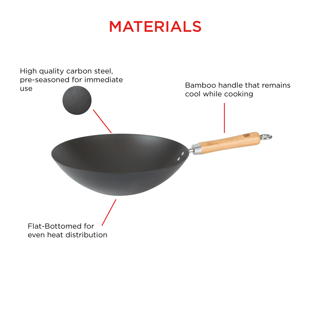 · Carbon Steel Material: Made from 1.2mm thick (1.2 gauge) non-stick carbon steel, this wok is built to last and perfect for stir-frying