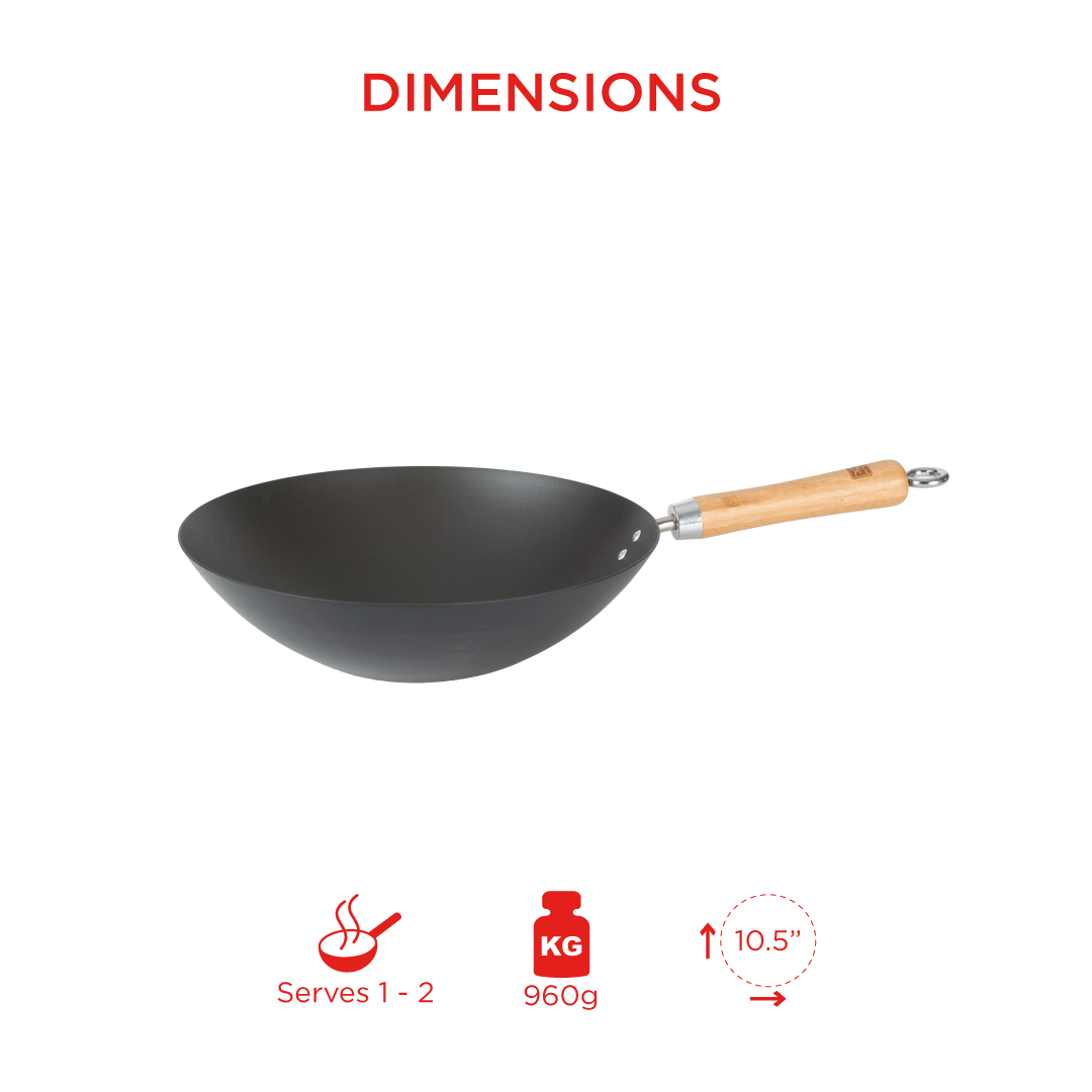 · Weight: Weighing only 960g, this wok is easy to handle and perfect for cooking meals for 1-2 people
