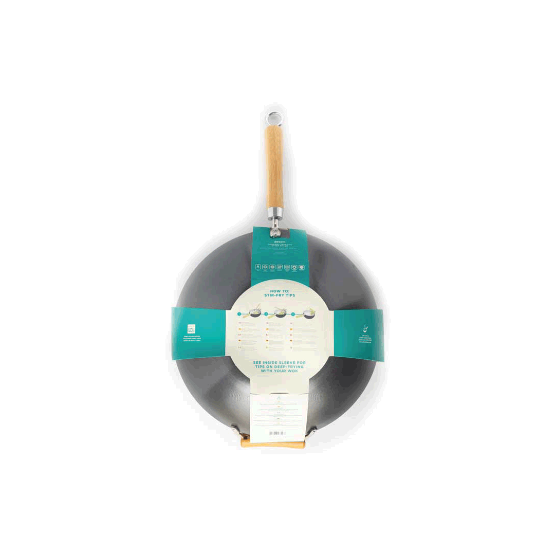 Created with traditional Asian cookery in mind, our non-stick carbon steel wok helps to unlock those delicious wok-hey smoky aromas that stir-fry is famous for. This wok size is perfect to create meals for 4-6 people and features a bamboo handle, a secondary handle as well as a flat bottom making it ideal for all modern-day hobs, including induction.